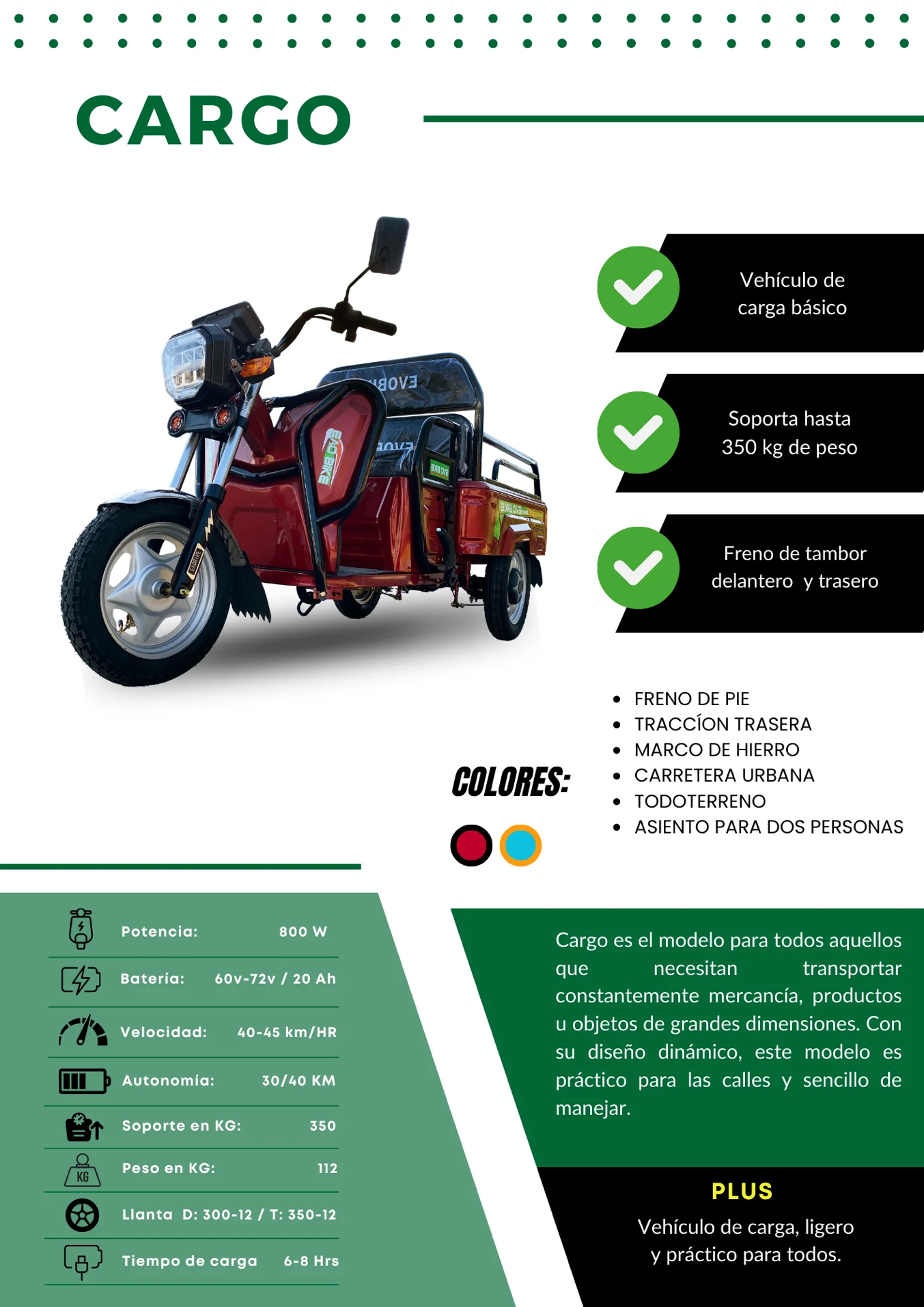 Naranja/Azul, Rojo/Negro, Verde/Gris